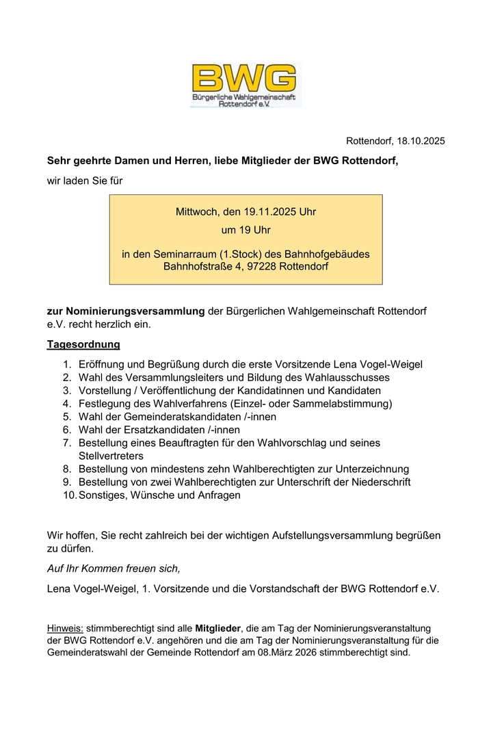 | 19.11.2025 | 19 Uhr | Seminarraum 1. Stock - Bahnhofsgebäude | Nominierungsversammlung |