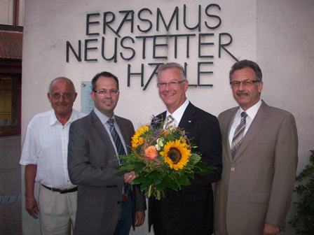 von links nach rechts: 3. Bürgermeister Heiner Vogel, Vorsitzender Volker Hauck, Reinhold Dietsch, Bürgermeister Rainer Fuchs